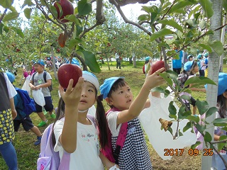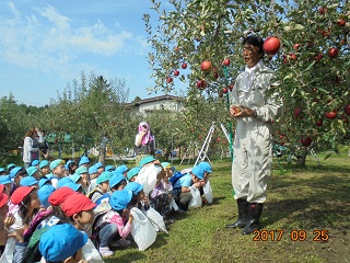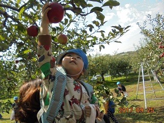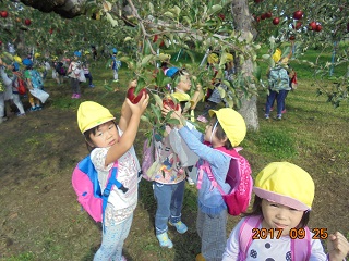 今日は、うめ組・ちゅうりっぷ組・さくら組のお友だちで、りんご狩りに行ってきました。