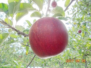 今年のりんごは「つがる」です。さっそく、りんごの木へ向かいました。